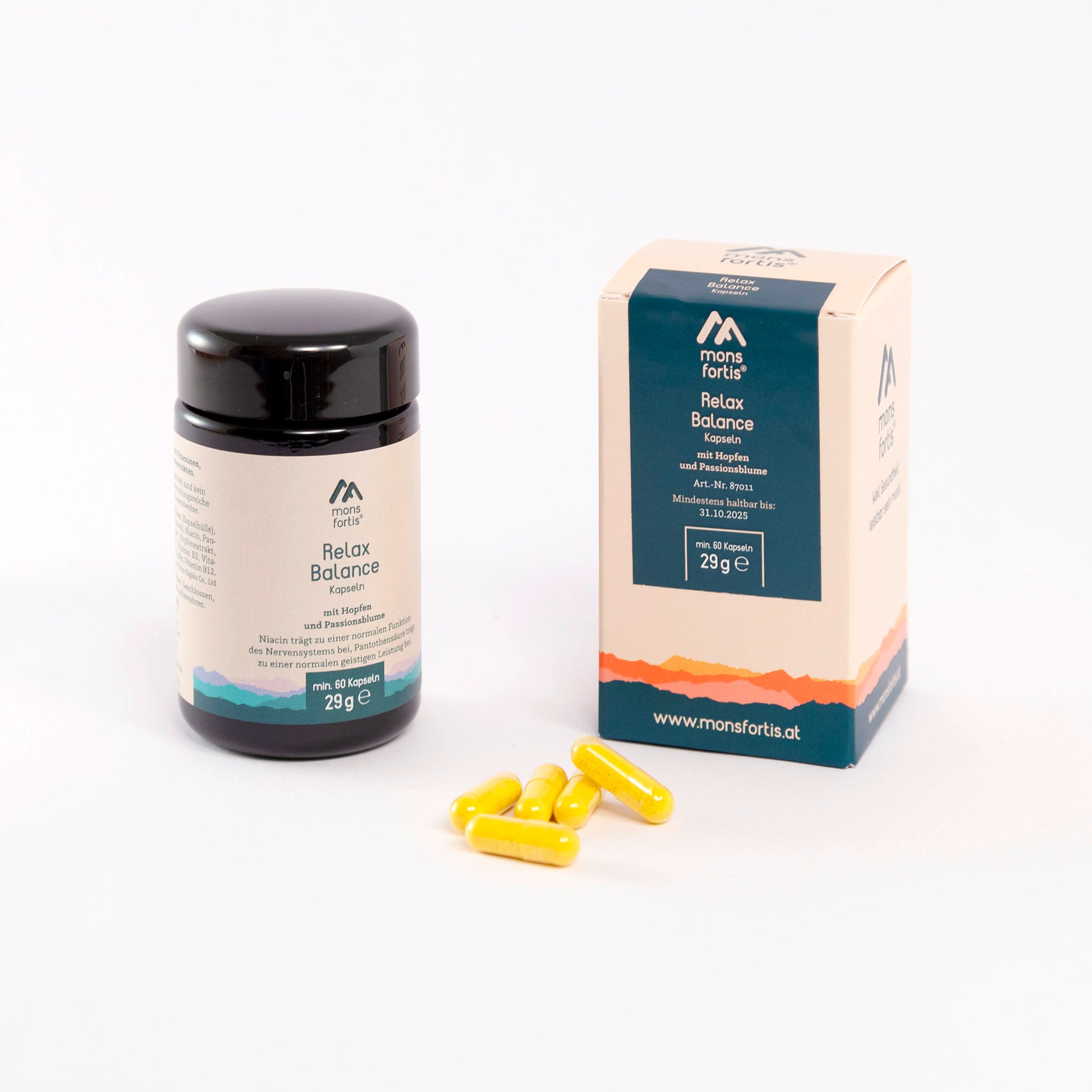 Die Relax Balance Kapseln kombinieren natürliche Pflanzenextrakte wie Passionsblume und Hopfen mit essentiellen B-Vitaminen. Diese fördern das Nervensystem und tragen zur Reduktion von Müdigkeit bei. Die vegane Rezeptur ist frei von Hauptallergenen und unterstützt eine entspannte Lebensweise.